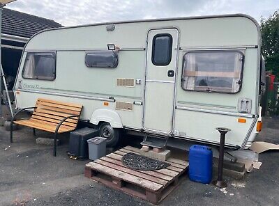 This is an old caravan but I think a perfectly nice one! We bought the van to live on site while we renovated our house and it’s been our home for 10 months and it has kept us warm (when it was minus 10! Outside) and dry throughout. The House is done now so we are ready to move it on. The van could be great for a project if that’s your thing but it’s in perfectly good working order, clean and tidy just as it is and would lend itself perfectly as is to another site van. It’s not been on the road since we bought it but towed fine, all lights working. Toilet – works Shower – never tested Fridge – works Cold water pump/sink – works Hot water pump – doesn’t workLights – work and we’ve added a security lightWe decided not to run any gas and hooked ourselves to electric so took the gas cooker out but still have it if wanted. All gas was shown working when we bought. Comes with leisure battery and gas can, and mirrors for car. Sold as seen, viewings possible. 07972047930
