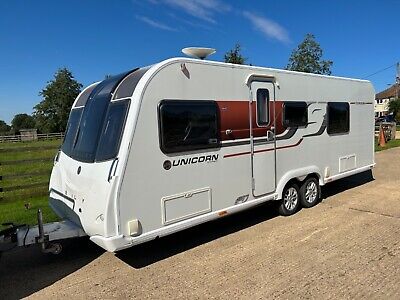 Here we have a Bailey Unicorn III Cordoba The caravan was first registered on 13th February 2015 and has had one previous owner it comes with a Cris Hpi report, appliance manuals and two keys.The external body work of the caravan looks to be in very good condition with only a few very small dinks and marks consistent with its age.The interior of the van is also very good, again, with wear and tear consistent with its age.There are a few marks and scratches around the interior and one of the blinds in the bedroom needs looking at as it doesn’t stay up. There is a small clip there that holds it in place. I will try to rectify it properly before the end of the auction.It has just had a set of new genuine Bailey caravan carpets fitted and I have also supplied a new submersible water pump for it.The caravan is being sold in full working order and a demonstration of how all the appliances work will be given on collection.The caravan has a great specification which includes the following:‘Polar white’ body shellOpening vertical SkylightAL-KO 3004 StabiliserTUV tested 14” alloysAL-KO ATC Trailer ControlAL-KO Wheel locksAL-KO Jack100 watt Truma solar panelAlde programmable radiator heating and hot water systemExternal satellite connection pointDometic 190 litre fridge and freezerThetford dual fuel hob Thetford Caprice combined oven and grill.Microwave Thetford cassette toilet with electric flushSeparate shower with solid shower door High quality concertina blinds and fly nets.Shipping length 26’Internal length. …