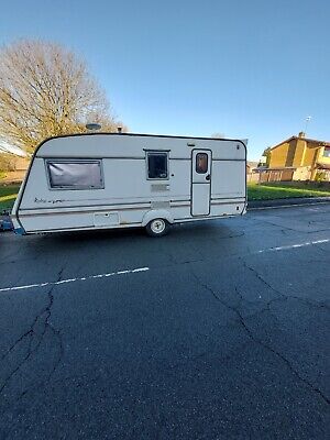 Everything works. Good condition with no damp. Ready to use straight away on holiday. Tow lights working.Grill and hobs, full size cooker and fridge freezer, sink in the kitchen. Hot water gas/elec.Toilet and shower, basin in the bathroom.All electrics Work. Tyres good. Tows well. Alko Hitch.King size at the front and bunk beds at the side. Water barrel, Battery, Hook up lead, water pump.