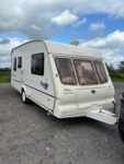 Two berth, single axle, with motor mover, full size Isabella awning (hardly used) and groundsheet. Gas cooker, 3 way refrigerator, gas heater. Rear washroom with cassette toilet, separate shower, basin and built in wardrobe. Mains hook-up. Winter cover (seen better days … [Read more...]