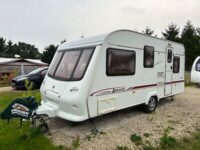 Elddis Avante 505 caravan. 5 berth, seating area changes to a double bed one end and the other end changes to a double bed with a single bunk above it. It’s has a fixed toilet and basin and the bathroom can be used as a wet room (although we have never used it as … [Read more...]