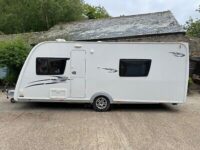 Elddis Avante 505 caravan. 5 berth, seating area changes to a double bed one end and the other end changes to a double bed with a single bunk above it. It’s has a fixed toilet and basin and the bathroom can be used as a wet room (although we have never used it as … [Read more...]