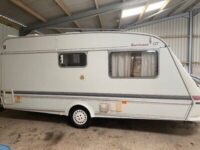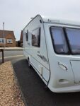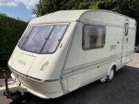 Elddis Avante 505 caravan. 5 berth, seating area changes to a double bed one end and the other end changes to a double bed with a single bunk above it. It’s has a fixed toilet and basin and the bathroom can be used as a wet room (although we have never used it as … [Read more...]