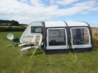 An elddis odyssey 4 berth caravan with a green Isabella awning. Comprises of an L shaped living area with pull out double bed, dining area with small table which converts into a set of bunk beds. Also comes with added folding table for living area. Kitchen with cooker, … [Read more...]