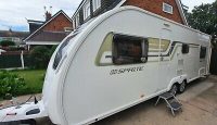 Comes complete with loads of extras in great condition.Clean and waste water tanks.Electric hook-up cable.2 x Alko wheel locksHitch lockWheel ramp.Leisure battery.Water pump and hose.Gas bottle.Loads of extras.Sprite satellite auto finder in addition to normal aerial.Fixed … [Read more...]