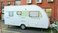 This is a sprite musketeer five birth caravan it is easy to toe it comes with a wheel clamp it has a double bed on one side and the seating area and it has another double bed and a top bunk on the other side there is a toilet heater a grill are seeing a fridge and a shower … [Read more...]