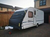 5 berth2 Burner hob / grillSink and DrainerCassette Toilet with SinkSofas and table convert into Double BedBunk beds can be either two singles or double and singleWater and waste tanks suppliedElectric hook upTowing electrics working12v/24v tv with aerial I inherited … [Read more...]