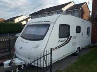 5 Berth, back seat converts into double with single above it. Separate bathroom with sink. Kitchen contains double gas hobs and grill, fridge, sink and cupboards. Units and interior in good condition apart from wall under front window where has had damp.Has been towed … [Read more...]