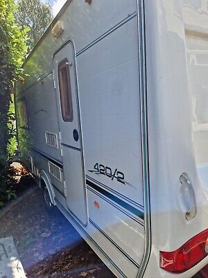 One previous owner from new. I purchased this in 2013 and have only used it a few times. Has been serviced when it was going to be used. Installed a EGO motor mover. Also comes with a full length awning and ground mat. This can be used as a tent with or without a tent compartment if purchased. Has a CD / radio with changer. Can be used via bluetooth with a dongle from a phone.Fridge with small freezer compartment Truma water heater and pump.HeatHot air output to awning and external socket. BBQ gas attachment.Concealed storage for table extension suppliedGas cooking with Bottle regulator etc.Toilet / Shower / vanity unit compartment- thetford cassette toiletGas Oven and cooker sink and drainer board.Lots of storage internal and external.Comes with: Water Bottle and pumpWater Waste containerLong hook up mains cable.Towing MirrorsAxle standsNoseweight weight measure device Approximate measurementsThe internal length of the caravan is 4.37 metres or 14.3336 feetThe external shipping length is 6.08 meters or 19.9424 feetThe width is 2.18 meters or 7.1504 feetA great little van but bear mind it is 18 years old so there are a few marks and dings.Things I know about:Last service there was a slight damp issue indicated in a few places. Monitored this but my meter not showing anything. In these areas a precautionary simple…