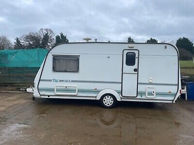 I am selling our caravan as not used for 3 years nowIt has a separate bathroom and shower with wardrobe at one end It’s in lovely condition inside and has been a really lovely caravan to own. It has wear and tear as not new but has been well looked after and loved It has a motorised hand held remote controller for parking without being attached to vehicleIt also has an awning but I have never used or opened the bag but was assured all bits were there for it ( I have not checked this ) There is some damp in corner of bathroom in one cornerI had the caravan serviced and both heating water pump all working correctly 2 years agoI have a lot of paperwork for the caravanIt has a new jockey wheel tooI have added damp bit it’s small and run down mirror I think it’s from the seal on the spoiler bit, it just needs some tlc Also has mains hook up