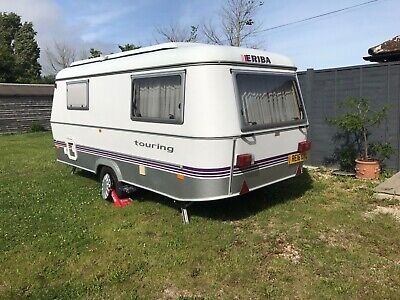 We are selling very sadly due to disability having used it only 4 times. We purchased it from Leisure First in Poole where it was in very good condition for age and fully refurbished and remains that way. We purchased a 3 year warranty in Oct 2020 although that cannot run over to the next owner. We purchased a new Leisure battery in October 2020.Eriba vans are characteristically beautifully made, well insulated, robust and very lightweight.The layout is a very popular one – wide really comfortable double bed at the far end which converts to round table seating, kitchen and bathroom in the middle and 2 person/table seating at the towing end, which converts to a single bed.The seat covers are original, undamaged and clean. The fabric being multi coloured doesn’t show marks and is easily cleaned.The top pops up to give extra height.INCLUDED : 1. A remote control Reich Motor mover which is invaluable. 2. An ‘Outdoor Revolution T3’ air awning. Full walls and floor. Used once. 3. A nose wheel lock and key 4. A hitch cover 5. A file containing full operating manual 6. Awning sealant 7. Melamine crockery/cutlery/kitchen tools …