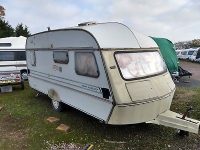 This van sleeps four in one twin berth and two single.It has a three way fridge.Gas hob and gas cooker.Caravelle gas heating.Shower compartment.Aquaroll.Truma water heater ( needs leak resolving )Full side awning with breathable ground mat.Radio.No battery or gas bottle.Not … [Read more...]