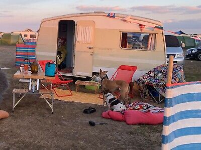 I am VERY reluctantly selling Bunty, my 1973 Sprite Alpine. 4 berth caravan. Axels 1. Cream colour. 12 feet long. 6ft 5 wide. Hob/grill and sink. It really is an excellent little van for its age, floor and roof solid. It still has the original curved wardrobe with shelves and hanging rail, the original kitchen and cupboards and little bathroom with sink. It also has the bunk to go above the single bed. The sink and cooker are both in good order, although discoloured as you would expect from age. There is a cupboard where the fridge would have been, it had a tiny electric addition when I got it, but as I preferred using a cool box, this has been removed (it really was very small and a much bigger fridge could be added if wanted). I had the gas fire and lights disconnected, but these original features are still intact if you did want to re-instate them (safely). The cooker hob is in good working order – I had this serviced every year. I have not connected it to electric for a few years as never wanted to go on an electric pitch, but it used to work – so would probably just need a service. There are lights throughout the van. The wardrobe space is…