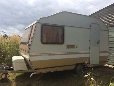 RE-LISTED DUE TO TIME WASTING EBAY SCAMMER! I can only apologise to everyone who was interested in this item previously. I am selling my retro caravan which is in a very original and reasonable condition for its age. It comes with a whole load of stuff to get you started on your journeys, including;-Porta Toilet-Fridge/Freezer (gas/mains/12volt)-Cooker/Grill/Hob (gas/mains/12volt)-Awning (condition unknown, not used in a long time)-Deck Chairs-Waste Water Butt-Fresh Water Butt-Step-Spare Tyre-Hammock-SinkThe Caravan has a mains hook up and a 12 volt supply which all work well. There is also a gas system which could supply the cooker, fridge and a heater but this has not been used for a long time so I’m selling saying the gas system requires a full inspection and service (Currently not working!)There are two seating areas, one turning into a double bed, one turning into a single bed with space above it for a hammock shelf. There is also a small room for the toilet, a large storage cupboard as well as kitchen storage. Dimensions; External cabin length including lights and windows approximately 3660mm, Tow hitch and box approximately 1000mm, Total length approximately 4660mm.External cabin width including lights and windows approximately 2060mm.Please note this is an old caravan so there is some wear and repairs (see closeup window photo) but is does have a great retro classic feel and will make someone very happy. Sadly selling as we no longer use it.Must be collected within two weeks of sale. Reasonable offers accepted for swift removal. All payments by…