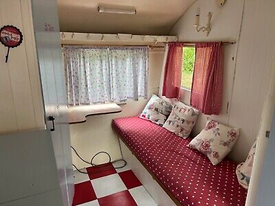 For sale here is our 1975 Sprite Sprint 14ft vintage caravan. For the last 8 years this has been used as occasional extra guest accomadation at our rural family home. Most recently has been lent to a neighbour to use whilst doing some renovation work where it is currently located. Overall in good general condition but as with anything of this age there are always little bits of tlc needed, it has not been towed on the road in a long time so we cannot guarantee the lights / brakes / tyres are fit for road use however It was recently towed the short distance to the neighbours without issue.This would make a fantastic small winter project for someone to put their own touch on and make use of, only for sale due to buying a sheperds hut to replace it.Viewing welcome by appointment, item location is Presteigne, Powys, LD82HY. Strictly cash on collection.