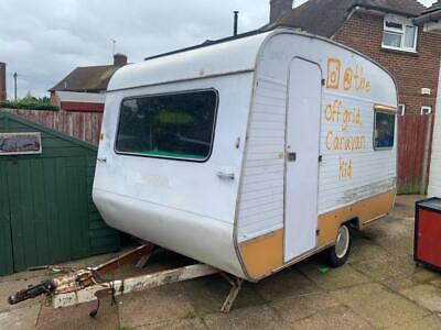 Sprite Cadet 12’ Vintage Caravan *READ DESCRIPTION*PLEASE DON’T BID IF YOU DON’T WANT TO BUT IT.Not sure of exact age but I think it’s an 80’s model.Inside had been completely redone to turn it into a liveable space off grid (see below for full details)Pros:Double fold out sofa bedKitchen unit with sinkFridgeShowerWashing machine HeatersLightsBluetooth sound barPop-up wardrobeSolar panel12V to 240V inverterWater heater and pumpGas bottleWater canistersHoover Cons:Needs new leisure batteryNeeds a new lock on the doorNeeds repaintingCaravan is sold as seen as seen and viewing is definitely recommend as it’s such a unique space and difficult to show properly on photos.Ready to be towed away. Has 2 new tyres (one on the caravan and one as a spare).Viewing and collection from Coxheath, ME17Please note, I am away for a week from 17th June so collection would need to before then, or when I’m back.