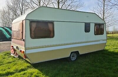 Hi we have owned this caravan for many years ,it has been in dry storage when not in use.Its in fair condition with the expected marks and wear for its age,ALL the photos were taken this week ,so what you see is what you get !OUTSIDEtyres goodChassis solidBrakes goodRoad lights goodGas connection with regulatorComes with full length awning including poles, pegs and draught skirt for base of vanAll in good condition and matches the age of the van.INSIDEElectric hookup,3 sockets and light, Gas heaterGas hobb, grill & ovenAll work but not certified 12volt lights and cold water pump to kitchen sink , Not TestedHas separate washroom with portaloo but no sinkAnd wardrobe space. Roof vent replaced with clear purspex and sealed ,good and watertight .ALSO INCLUDEDspare wheel, steps, leg winder, tow mirrorsWater and waste containersReason for sale surplus to requirements and need the barn space.Suit classic car from 1980s make matching outfit.Easy update ideal project for summer getaway !Good to tow awaySold as seen , it is what it is !You bid to buy Not haggle after !!!Happy bidding