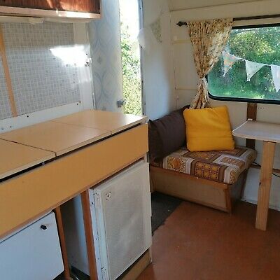 Beautifully restored vintage caravan that sleeps up to 3 people.It has a double dinette table and seats that convert into a double bed and a single dinette that converts into a single bed.There is a kitchen area with cooker, double hob, grill, sink and drainer, plus a fridge.The bathroom has a foldable sink and space for a porta potti. I have kept as much of the original features as possible, and have made new curtains. The seat cushions, upholstery and floor is original.This is a bright sunny caravan that is extremely light to tow and easy to manoeuvre.Viewing is welcome and encouraged. Please only bid if you are genuinely interested in this caravan, are prepared to pay a deposit within 24 hours of auction end and can collect within a week.