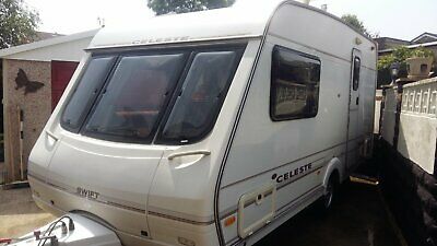 Swift celeste 2 birth in very good condition inside and out ,this has double glazing – window blinds and fly screens factory fitted all in good working order. lots of storage and everything works as it should with no problems. The van has alloy locking wheels with extra wheel lock Alco locking stabiliser hitch and 2 x awnings these came with our van and we have never tried these so not sure of size. This also comes with a few kitchen equipment so is ready to go on your holidays.It also has a motor mover fitted for easy parking on your drive or on site.*Please note tv & microwave is not included *cash on collection please thank you for looking any questions please ask – I also have this advertised on other sites so I will remove the advert accordingly.